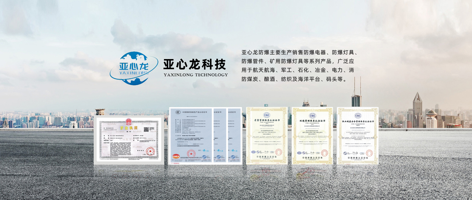 亞心龍(浙江)防爆電器科技有限公司座落于中國(guó)電器之都之稱的樂清市柳市鎮(zhèn),是一家集生產(chǎn)、銷售為一體的公司,主要生產(chǎn)銷售防爆電器、防爆燈具、防爆管件、礦用防爆燈具等系列產(chǎn)品,產(chǎn)品結(jié)構(gòu)輕巧、性能穩(wěn)定、造型美觀、檢修方便快捷、配套功能齊全,被廣泛應(yīng)用于航天航海、石化、冶金、電力、消防、煤炭、釀酒、紡織及海洋平臺(tái)、碼頭等各個(gè)領(lǐng)域、均獲得廣大用戶的好評(píng)。